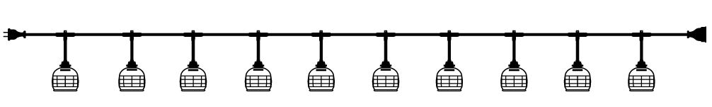 1ヵ所のコンセントから複数個の電球を点灯させることができますので、華やかさを求める装飾用としても使われています。当社が在庫する工事現場用の標準品は電球数が6~12灯、ピッチ(電球の間隔)は2~4m、長さ(全長)は20~50mとなりますが、電球の数やピッチ、長さ(全長)は全てオーダーメイドが可能です。また、用途に合わせて電線の種類も選択することも出来ます。分岐された先は一般電球用ソケット(E26)仕様となりますので、一般電球よりも割れにくく寿命が長いLED電球を使うことも多くなりました。